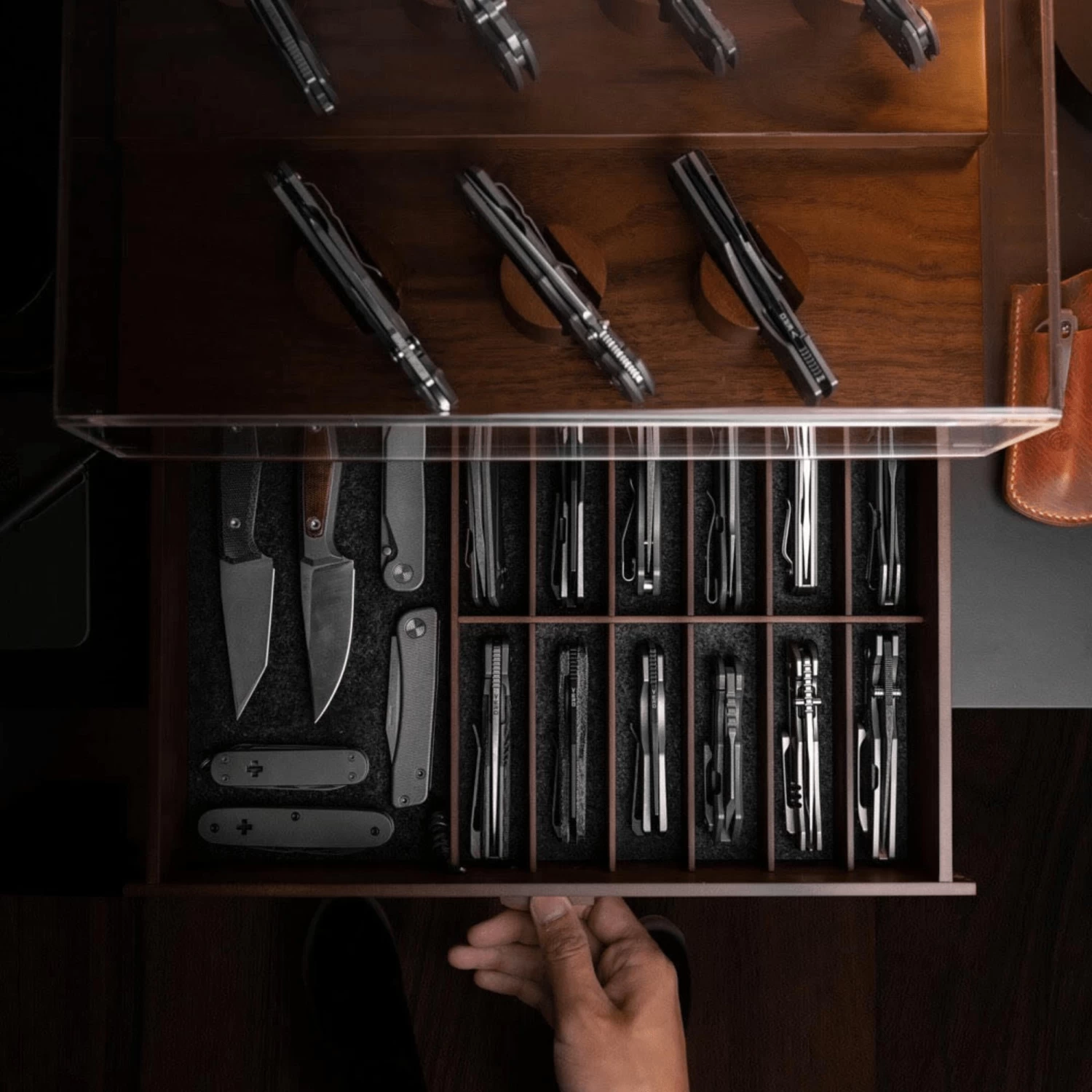 - XL drawer for additional knives and EDC gear