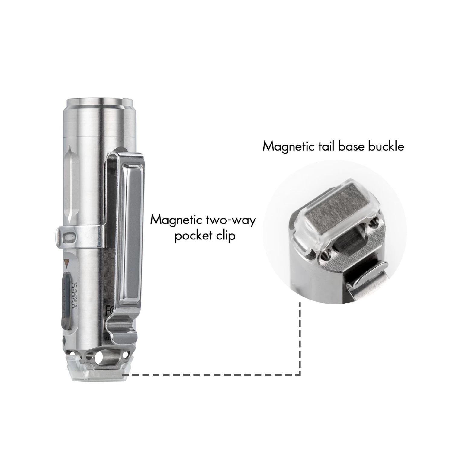 A magnetic pocket clip and magnetic tail base dock will be included with the flashlight, so you can attach it to a metal surface in both and have a hands-free light for things you’re working on. A lockout mode is applied to avoid turning on by accident in your bag/pocket. This updated G4 version has a metal operating summary, making it more unibody and harmonized.