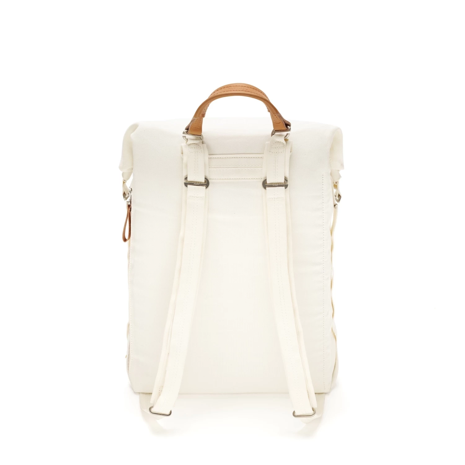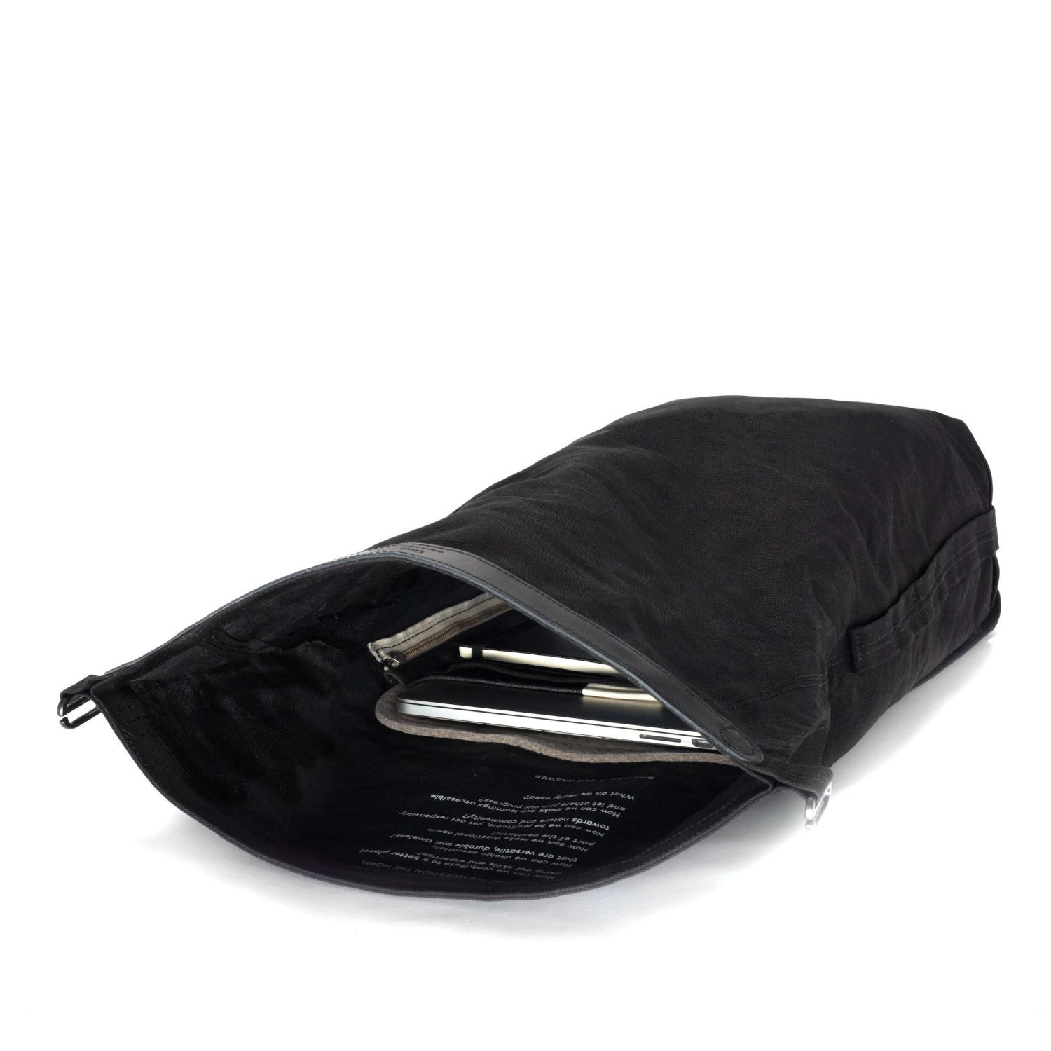 The Roll Pack is a versatile backpack that adapts to its content due to flexible roll-top closure. Large, expandable main body contains multiple inner compartments, including Merino felt lined sleeve that can fit up to 15″ laptop. YKK metal zipper features a unique cotton tape instead of the usual plastic one and allows direct access to the main compartment through side entry. The interior pockets are arranged to give frequently used items a practical spot. Adjustable backpack straps and a modular handle provide versatile carrying options. Natural beeswax treatment makes the bag water-repellent.