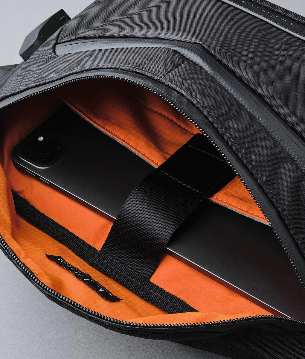 Bravo Sling V2 is ready for your tech and has enough room for daily essentials. A tablet sleeve fits 11” iPad Pro (or equivalent) and custom-made USB port helps you charge your device on the go.