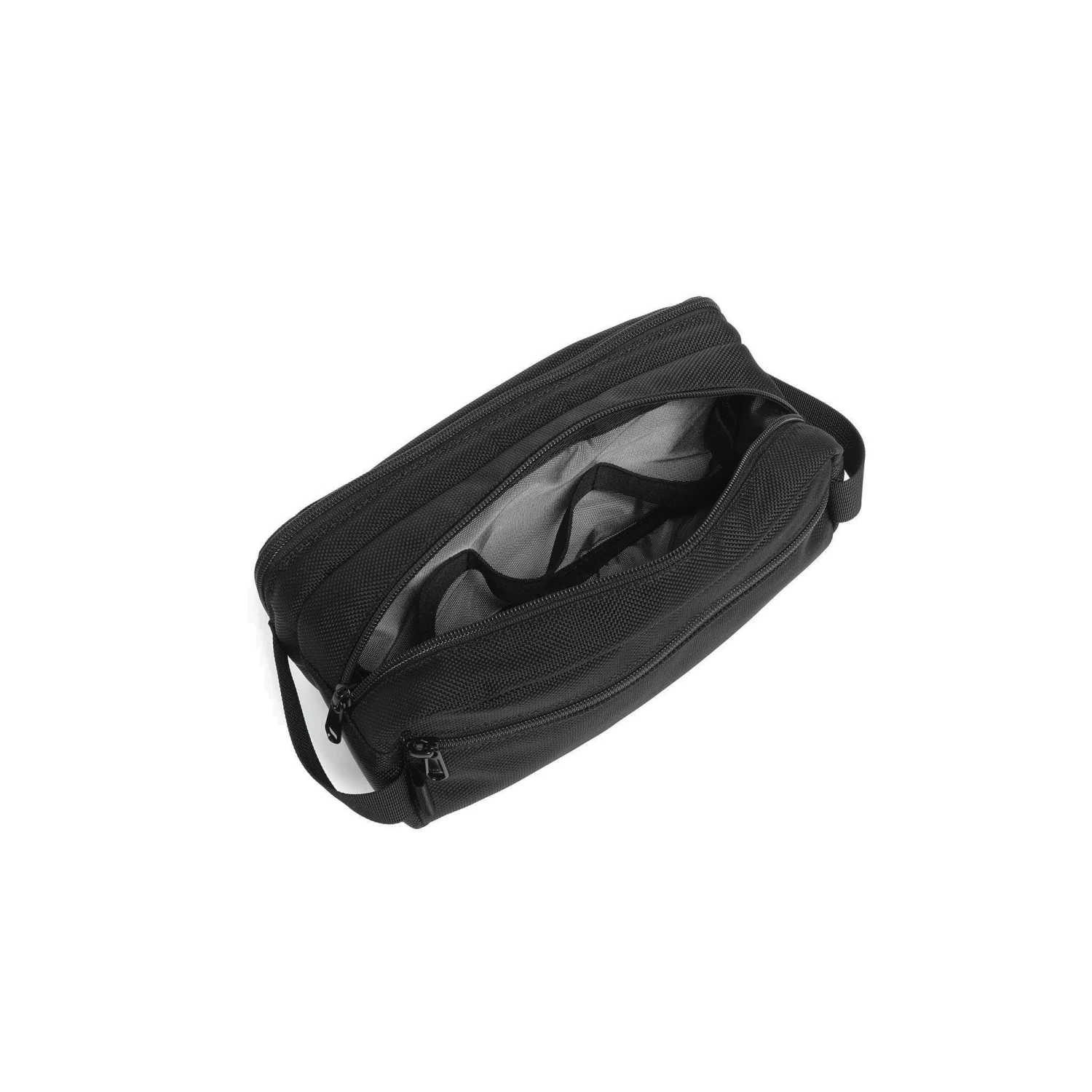 The main compartment features three elastic slots designed for travel sized liquids or even many oval or circular shaped containers.