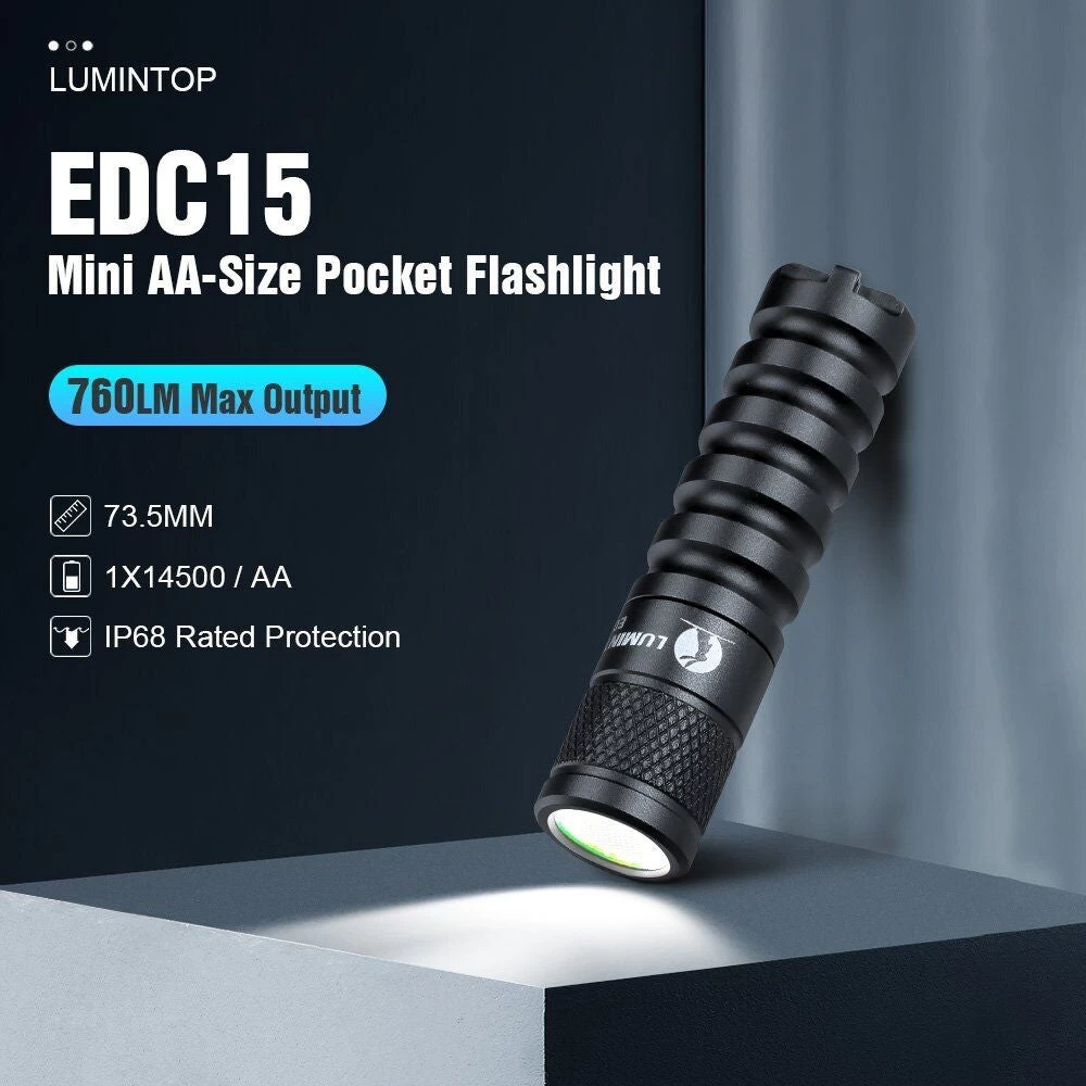 EDC15 is a compact and portable flashlight with a max output of up to 760 lumens. With a length of 73,5 mm, compatible with both 14500 Li-ion and AA (Alkaline and Ni-MH) cell, twisty operation, IP68 rated dustproof and waterproof protection, EDC15 is an ideal choice for EDC use.