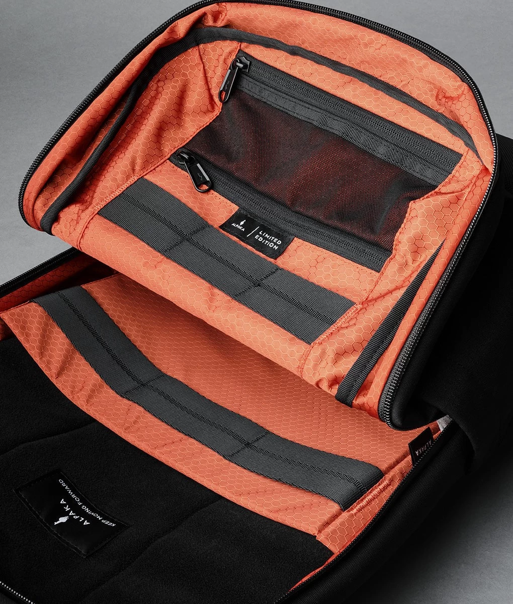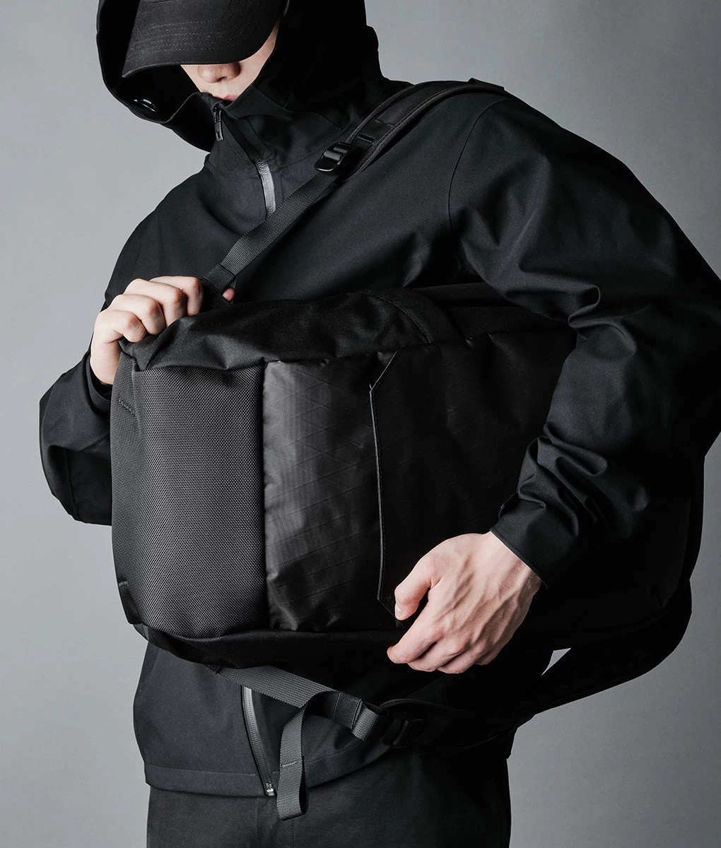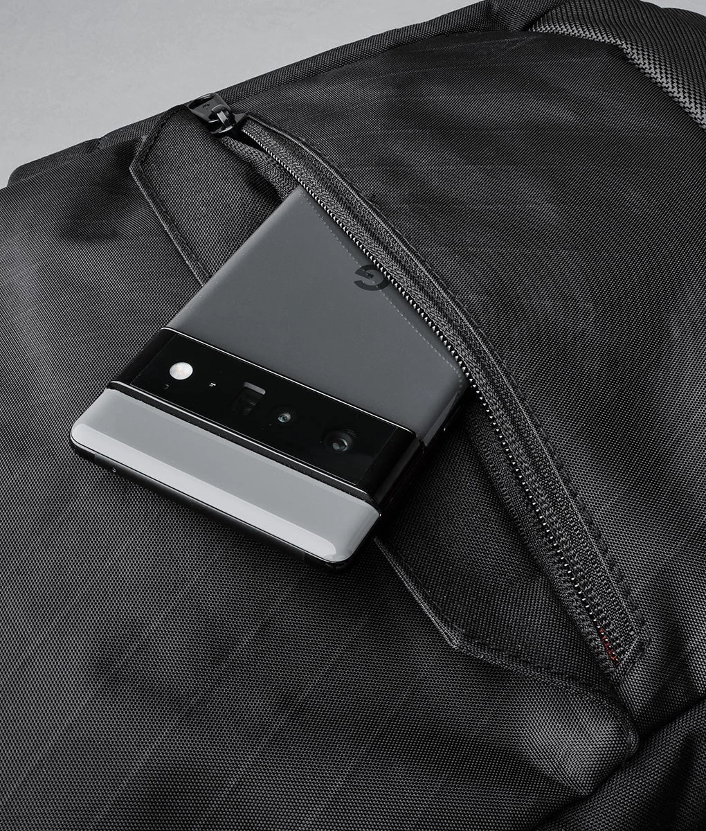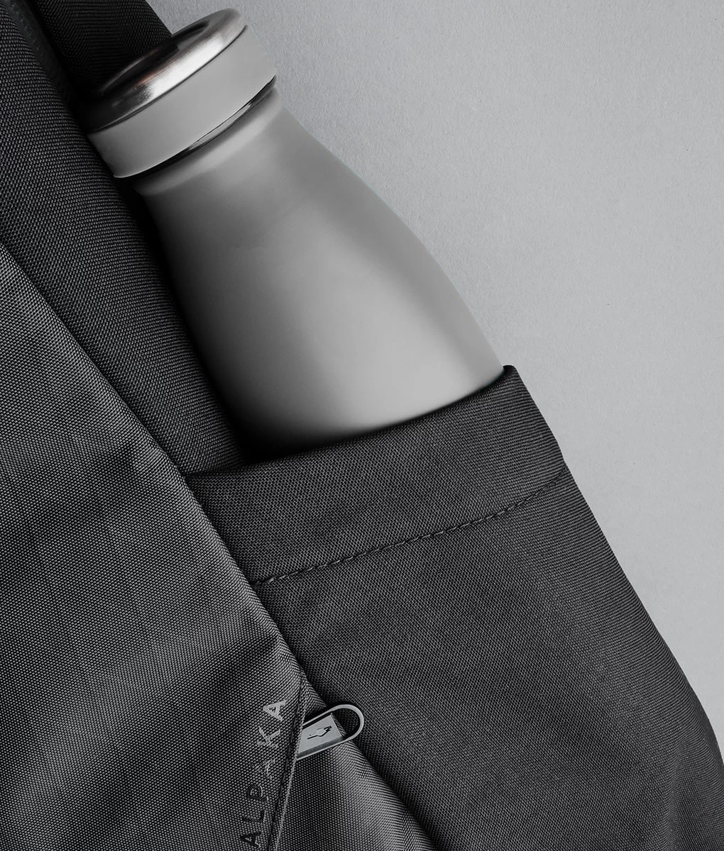 On the outside, you’ll find a hidden quick access pocket (safe from prying eyes) and subtle water bottle pockets that expand when you need them to. Can be packed flat and expands when you need it to.