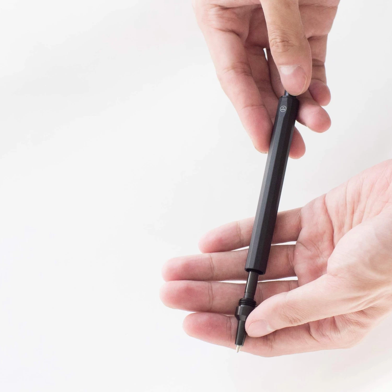 Weighted and balanced with a complete metal construction, the HMM Pencil is ideal for both writing and sketching. The dodecagonal barrel provides a comfortable grip and keeps it from rolling away. The HMM Pencil comes in 0,7 mm leads.