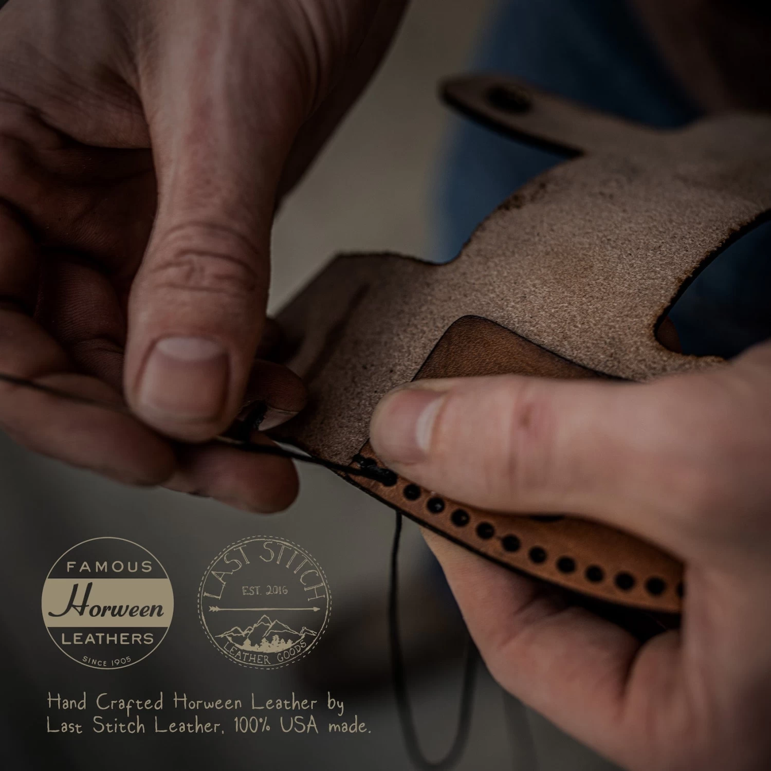 The premium leather sheath for Hyzer Hatchet. Made from Horween leather in the USA by Last Stitch who has years of leatherwork experience. Each sheath is made with love and is truly a premium work of art. Edges are laser burnished & spin burnished on the 2-layer stitched section for a ultra-premium appearance.