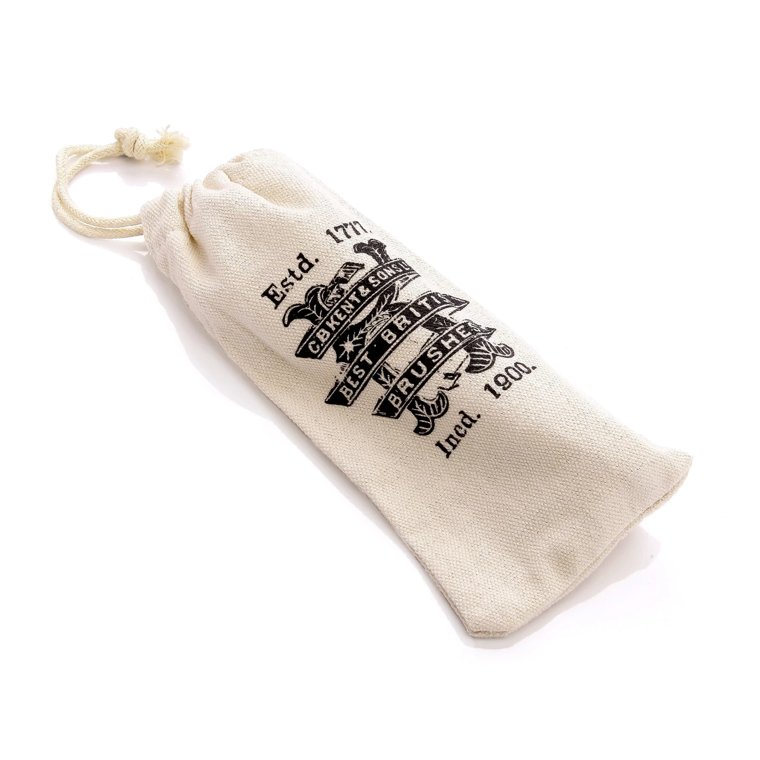 Each brush comes with a beautiful hand-stitched cotton bag printed on both sides. One side features the Kent company logo from the 1700’s whilst the reverse side is emblazoned with the exquisite beard logo designed by artist Andre Visage. Not only a handy bag to store your brush in but for those who use beard oil it will protect your clothes from any excess oil held in the brush head from leaching into unwanted places e.g your suit pocket or the lining of your favourite man bag.