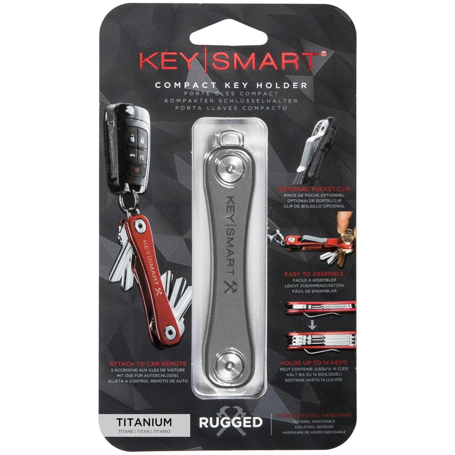 The KeySmart Rugged Titanium is built to endure anything life throws at it while eliminating bulky, noisy keys for good. The titanium plates are sturdy and the back plate includes a slot for the removable pocket clip. And with an included bottle opener, you will always be prepared for happy hour. This heavy-duty big brother holds up to 14 keys and a loop piece allows you to attach your car fob.