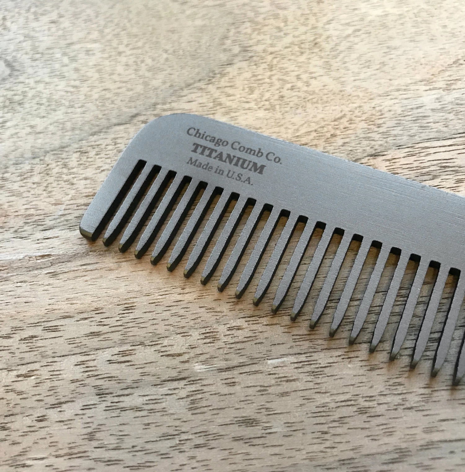 This comb is precisely laser-cut from a solid sheet of pure American titanium, carefully hand and machine finished in a multi-step process to ensure that all of the surfaces and edges are smooth, rounded, and perfectly gentle on the hair and scalp.