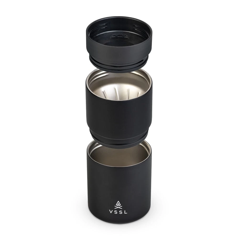 Each component is designed to work together, intuitively, to deliver the simplest brewing experience you’ve ever had in camp. Dual threads enable the 3-piece Kit to nest as one compact, transportable unit. When disassembled, the Kit delivers one 296 ml double-walled mug, one splashproof lid, and a double-walled pour-over coffee device. It’s an integrated, compact system that’s perfect for overlanding or anywhere you want a great cup.