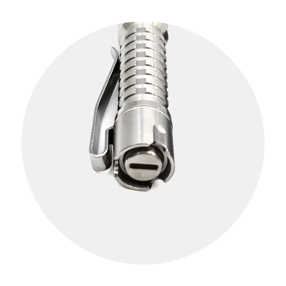 The new tailcap for Pineapple Mini Titanium prevents switching the light on accidentally in the pocket, and allows the torch to stand upright on a surface.