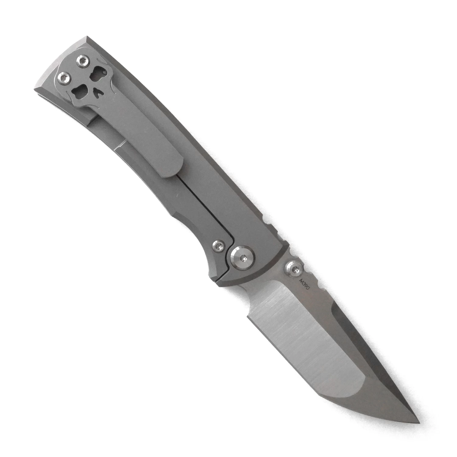 The skull-shaped pocket clip is the Chaves signature, but the knife comes with the standard titanium clip if you prefer something more minimalistic.