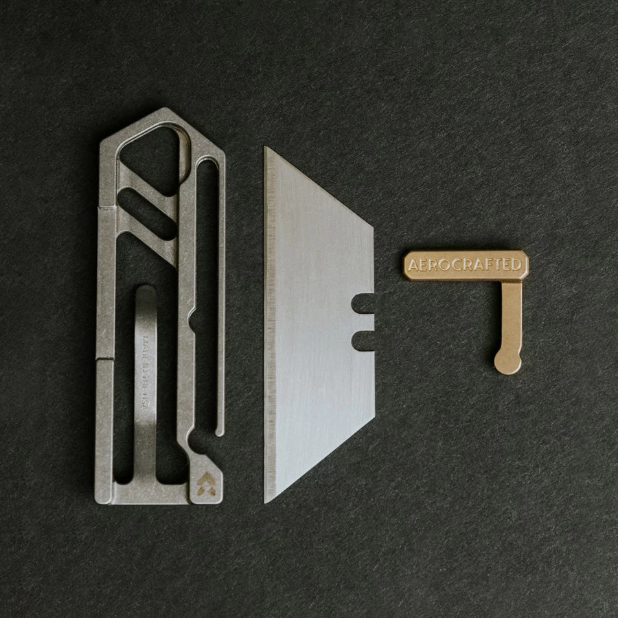This minimal everyday carry knife is made up of only two parts and a disposable utility blade. The unique design doesn’t use any fasteners, which means no tools are needed to switch out the blade. The skeletonized frame is designed like an airframe, removing all unnecessary material to keep the knife compact and lightweight.