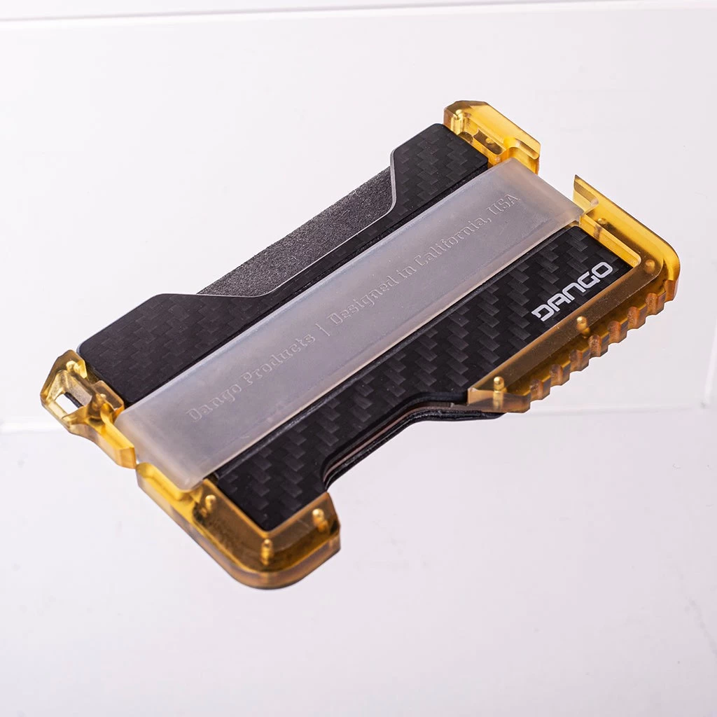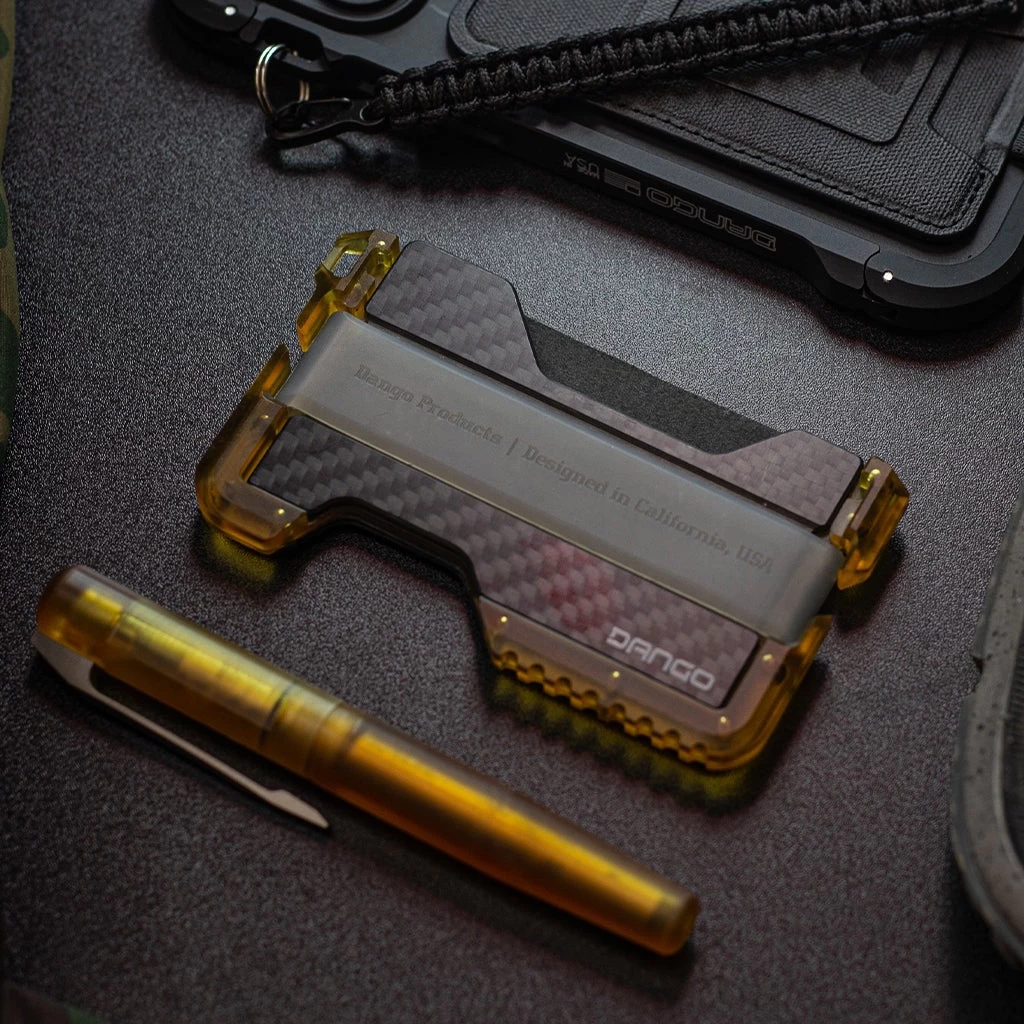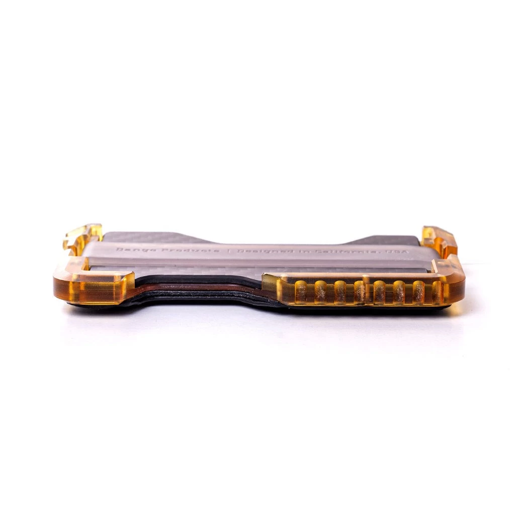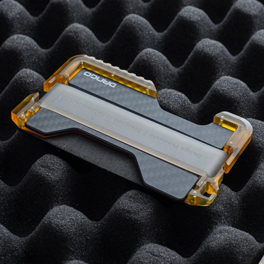 The T01 Ultem® Wallet with DTEX pockets and carbon fiber backplate is a premium EDC accessory designed for those who prioritize both lightweight durability and style. Constructed from Ultem, a transparent lightweight yet incredibly robust thermoplastic material, this wallet is exceptionally resilient to daily wear and tear. The DTEX pocket material on the T01 Ultem Wallet provides both resilience and a distinct texture, enhancing grip and resisting wear and water damage. The carbon fiber backplate not only adds a sleek and futuristic aesthetic but also enhances overall structural integrity and RFID protection.