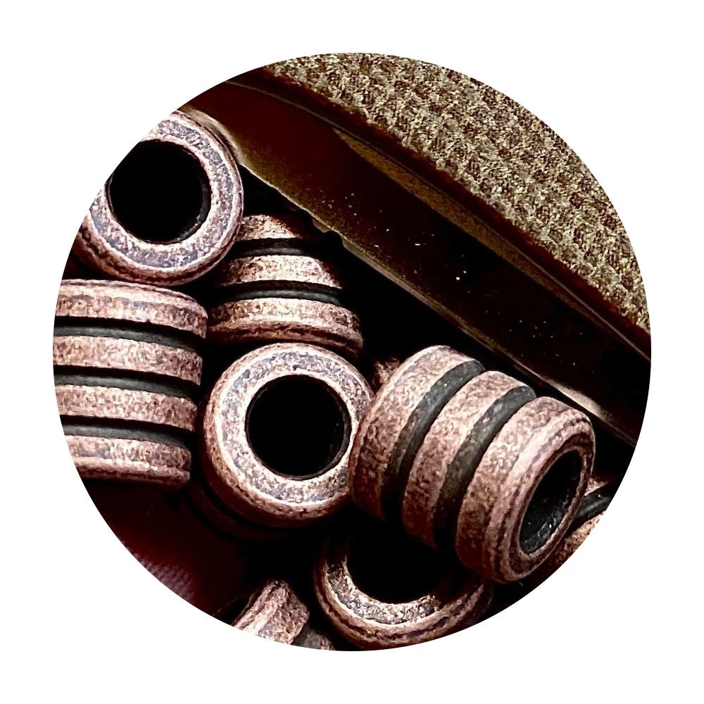 This copper bead comes stonewashed and aged but will continue to patina more with time. Great for lanyards on key fobs, knives, flashlights, zipper pulls, key chains, and all the things you can think to use them for. Simple design and built to last a lifetime. The bead has 3 grooves on it.
