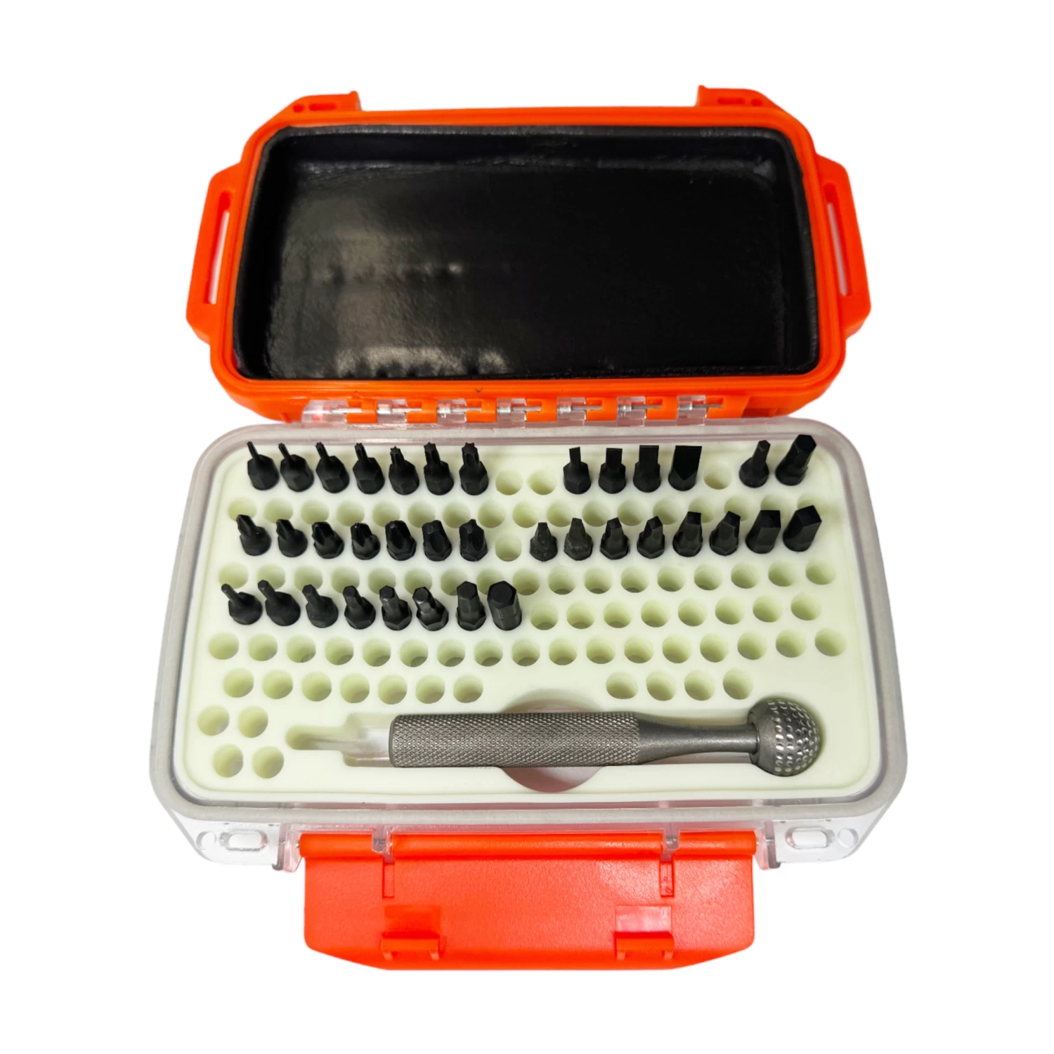 Elevate your toolkit with this Titanium Complete Master Kit. It is designed for professionals and hobbyists alike. Its knurled grip and ball-bearing concave swivel top provide maximum control, while the magnetic tip ensures precise handling.