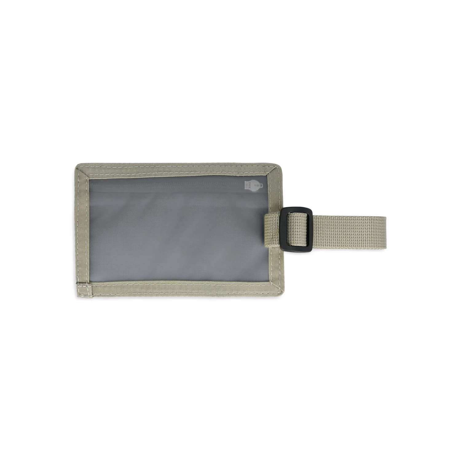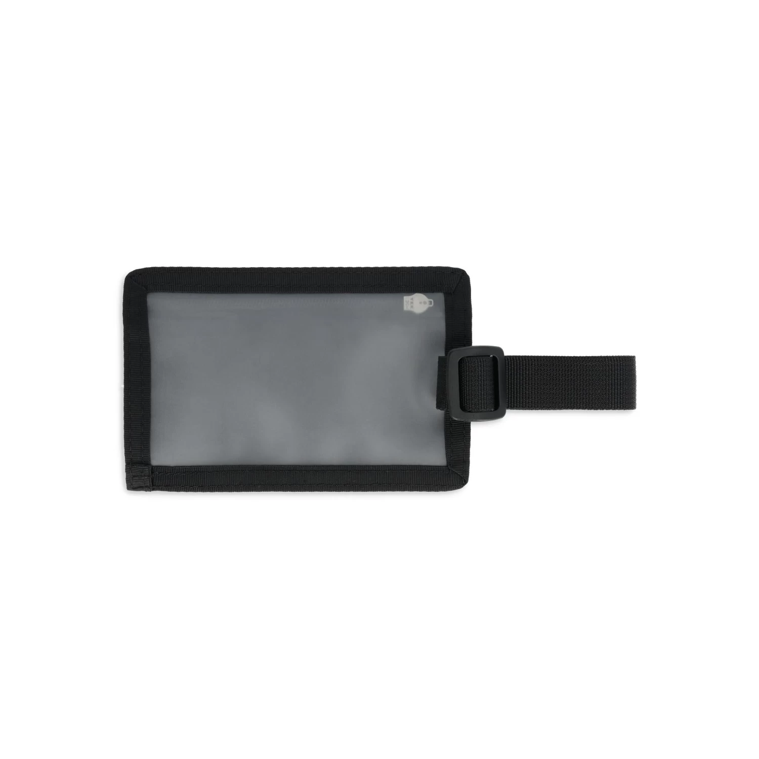 The luggage tag, made from eco-friendly 200D 100% recycled nylon ripstop, features a customizable webbing strap and an easy-to-use TPU window. Travel in style.