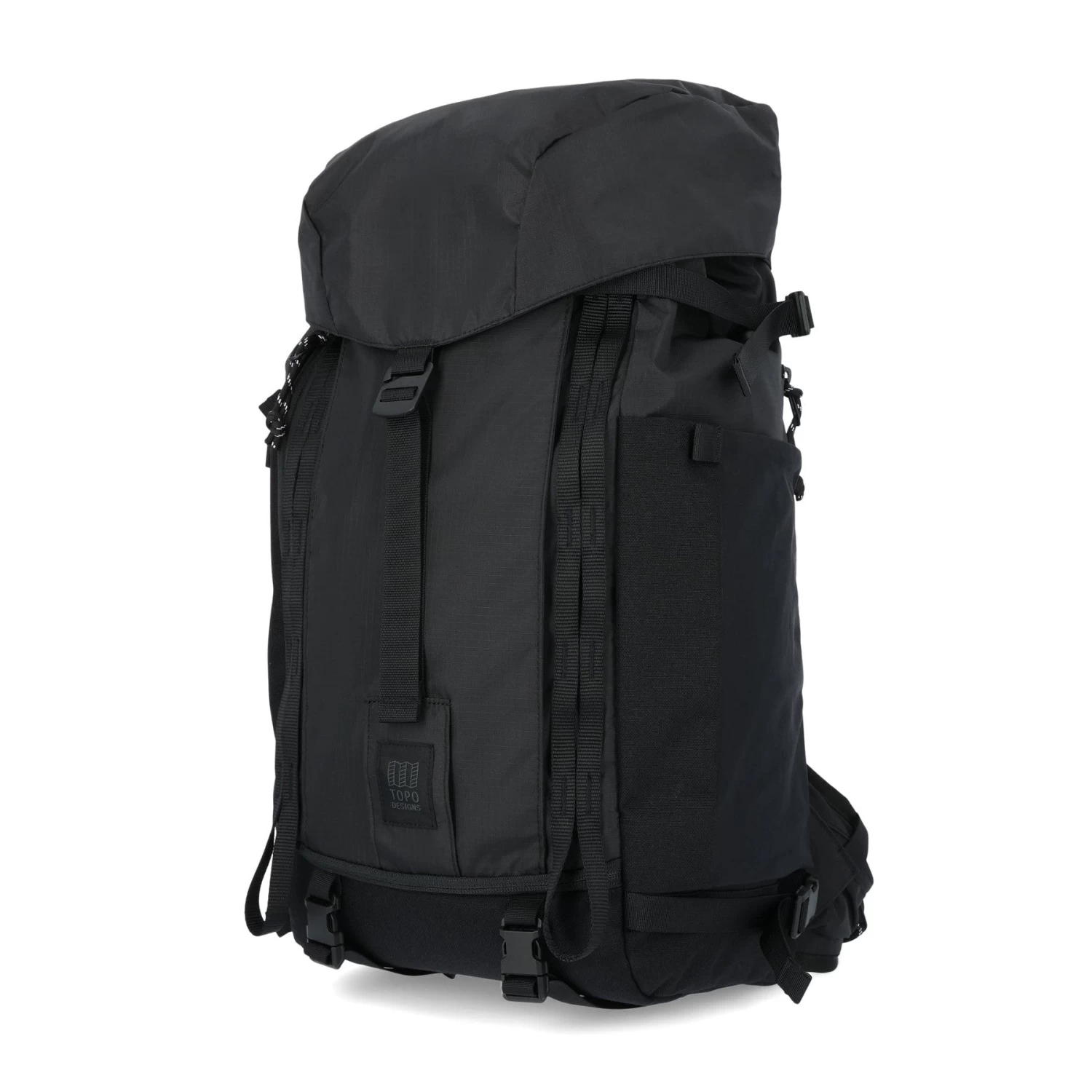 Spacer mesh back panel and shoulder straps make the Mountain Pack a more comfortable carry on the way up to climb, hauling around town, or navigating the trail. Organization pockets make it easy to get through TSA, while large side pockets fit full-sized water bottles. Four compression straps adjust to the load size, while durable daisy chain webbing is perfect for securing extra gear or attaching a bike light.