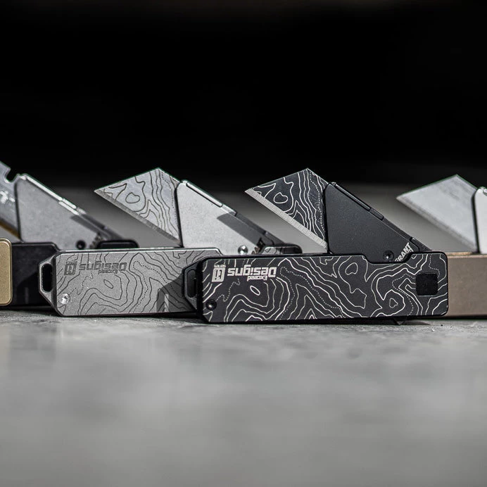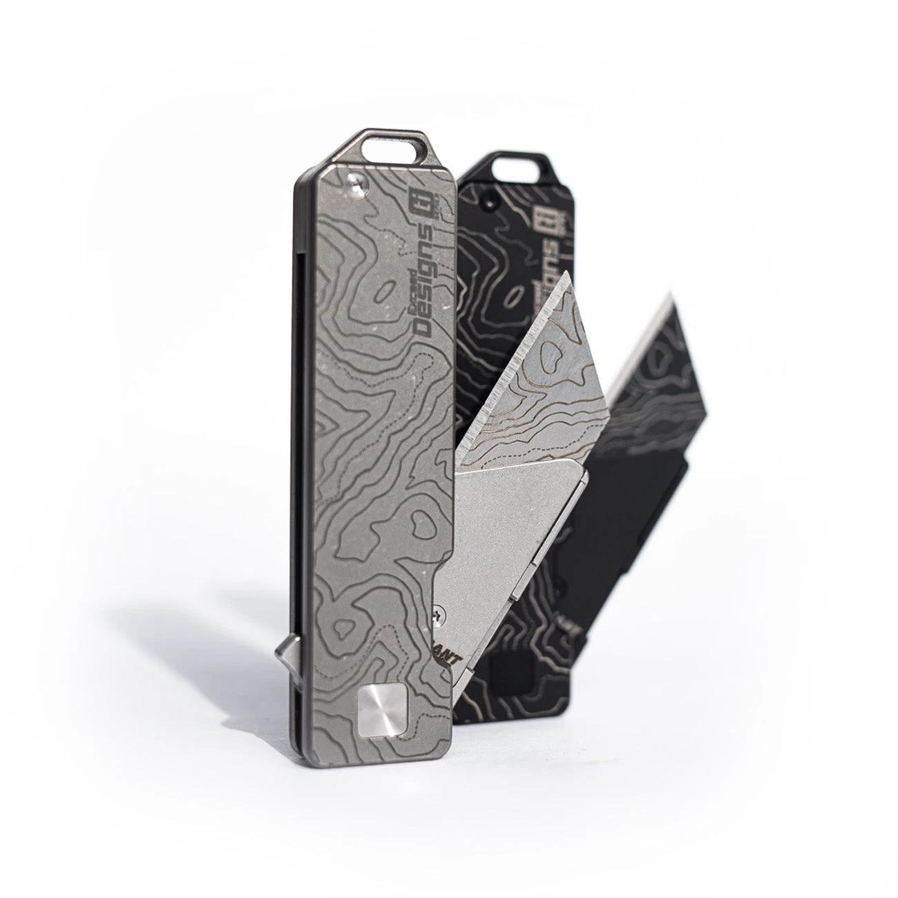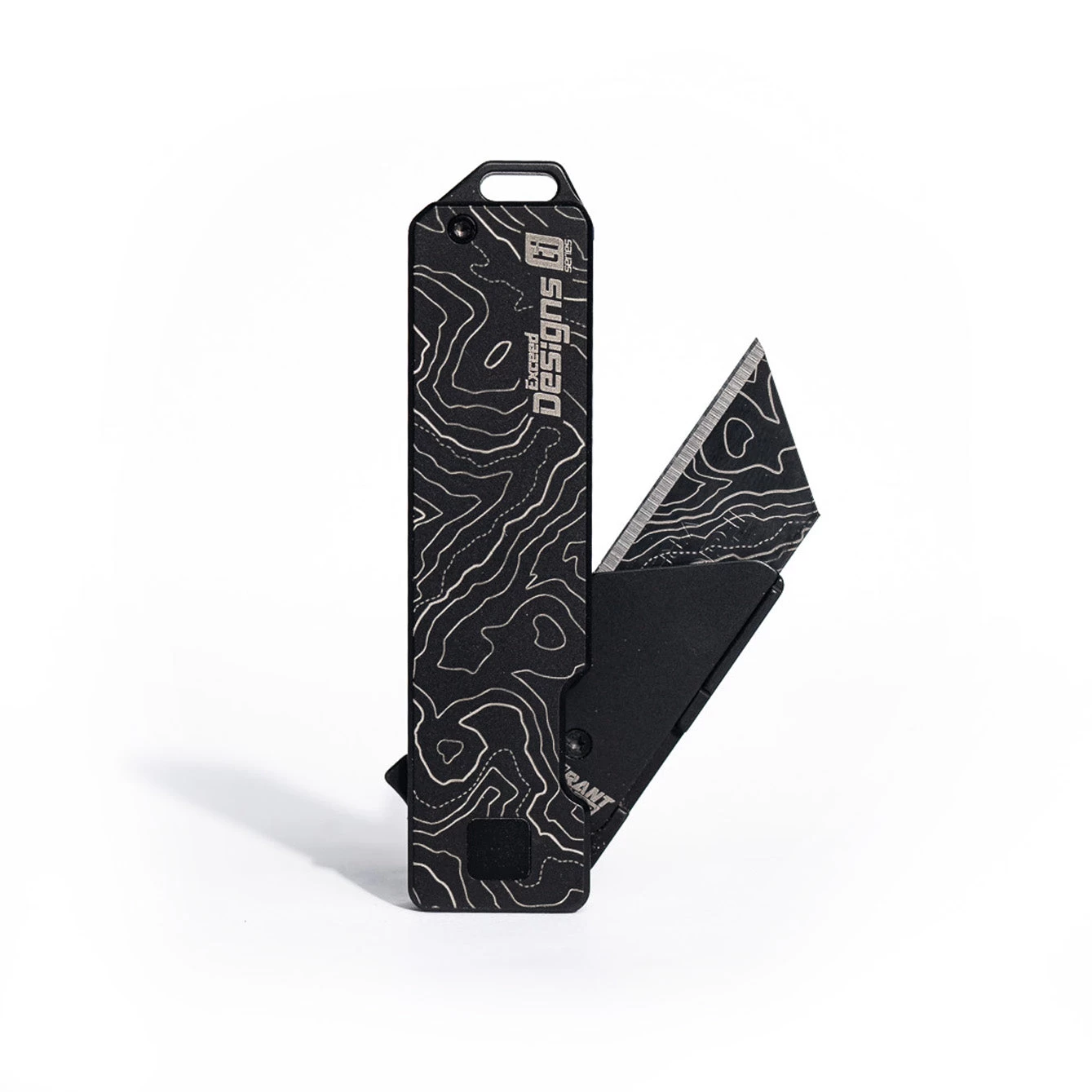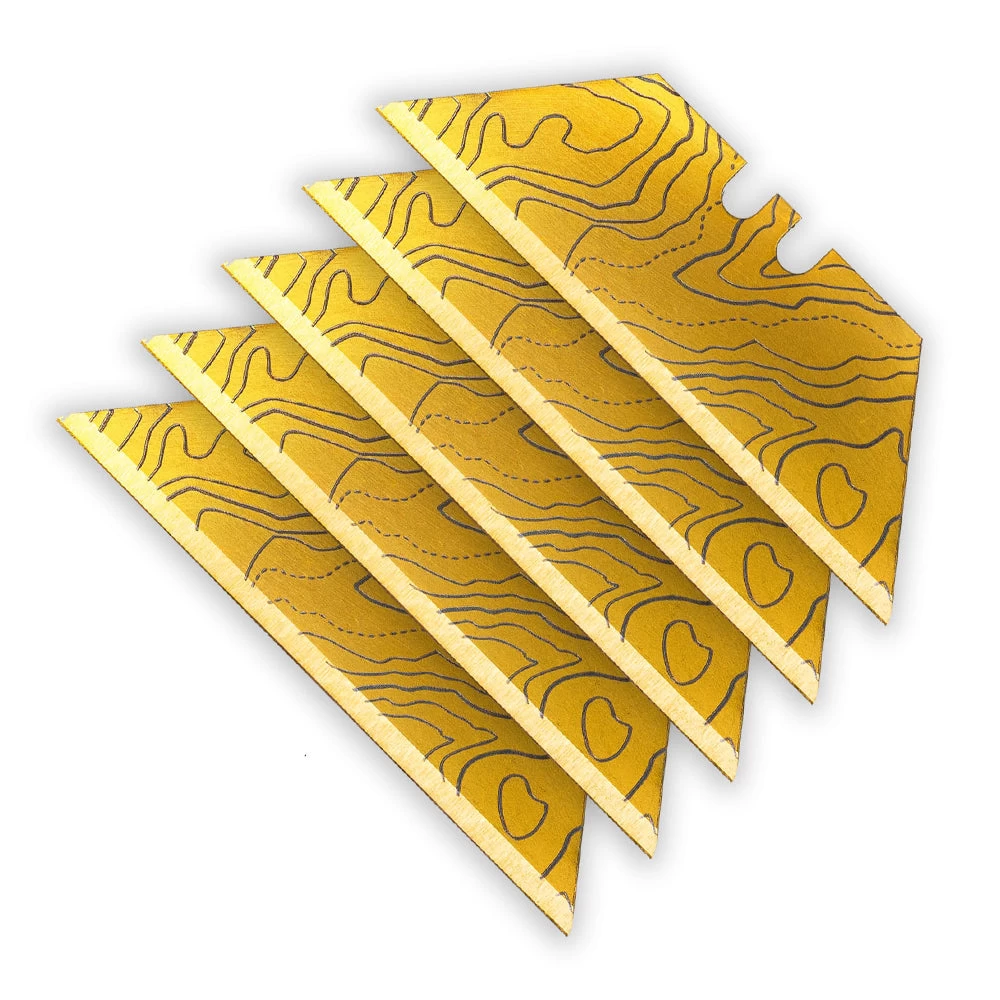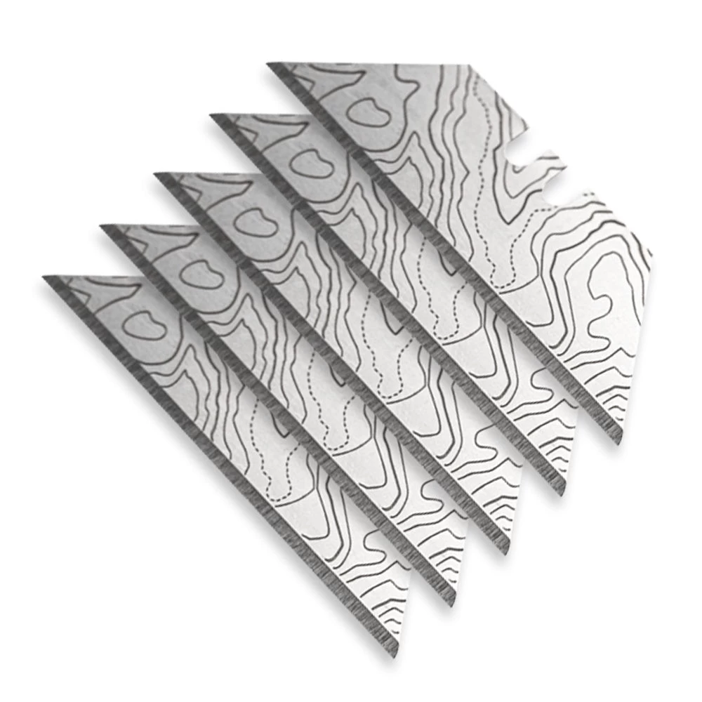 Includes 5 x premium utility knife razor blades with topo map laser engraving on both sides. Laser engraved in the USA.