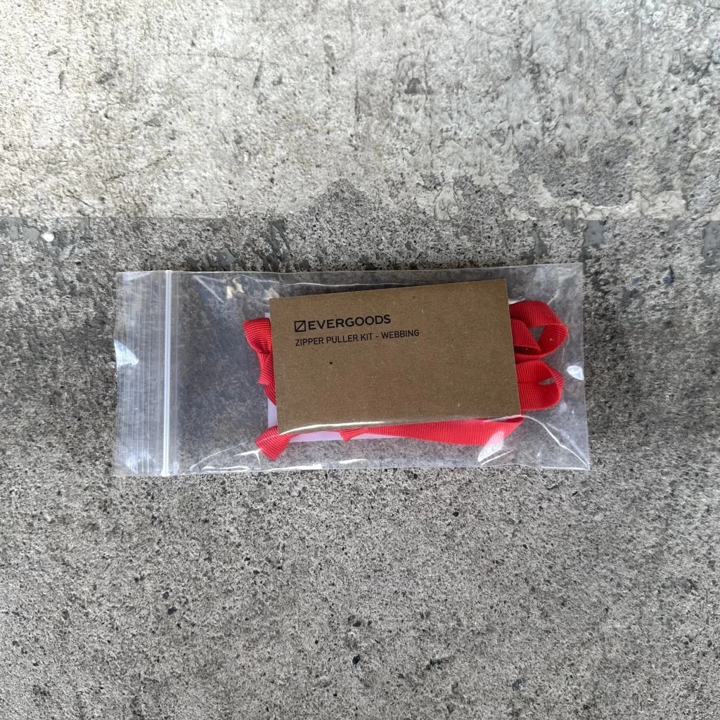 Customize your Evergoods pack with Webbing Zipper Pulls. The kit includes 6 zipper pulls.